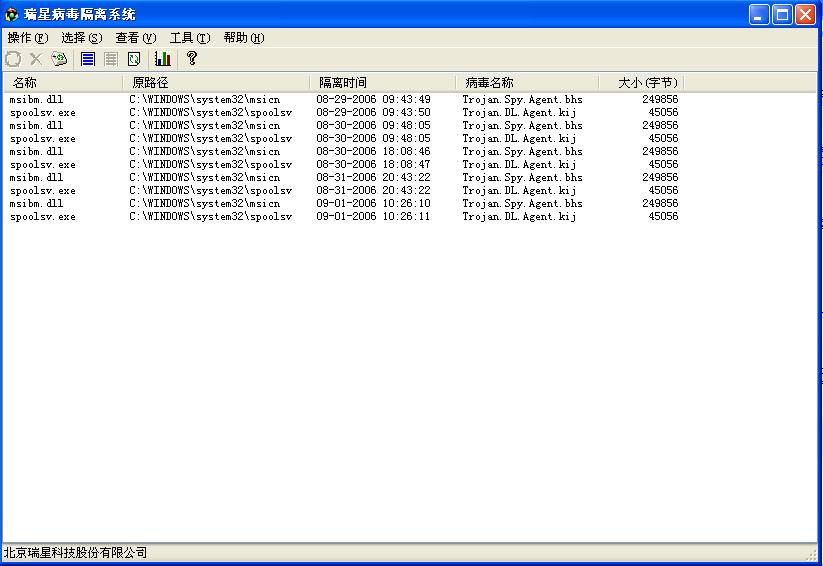 请看下图。每次开机,在病毒隔离系统里面都有这两病毒。但是,瑞星却没有任何关于病毒的提示。升级到最新病毒库,进行全盘、断网杀毒却没有任何的病毒了。这到底是怎么回事啊~~~~