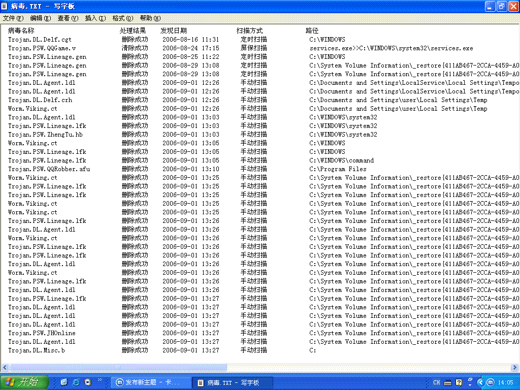 我今天查杀了32个病毒...