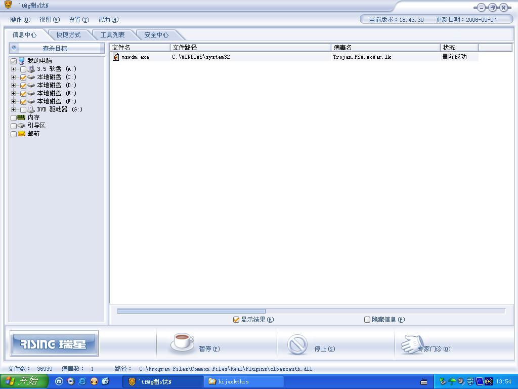 Scan saved at 13:52:40, on 2006-9-7