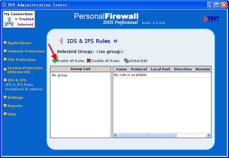 baohe版主,我的Tiny Firewall 2005 Professional中IDS/IPS是空的,正常吗?