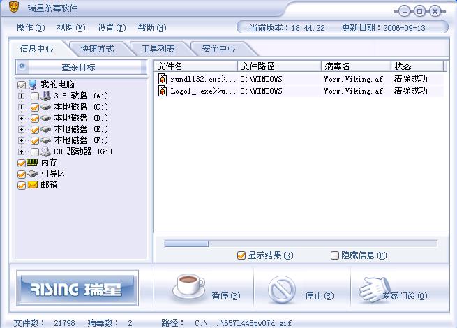 别是瑞星误判吧??我的系统可是刚刚重装的。没上什么垃圾网站,也没下载什么游戏或其它东西呀??晕死!