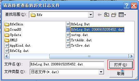 你在列表中点中你保存的那个日志文件后,选择下面的打开啊!打开后那个日志窗口就是保存的日志了……