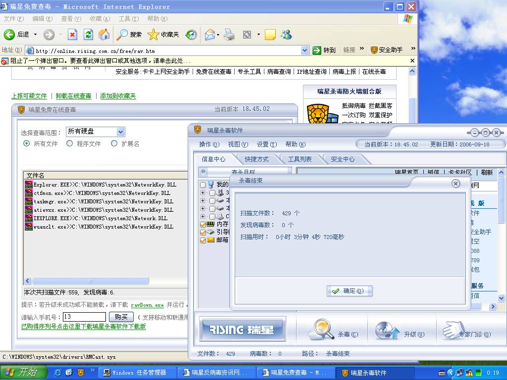今天用免费查毒吓我一大跳,赶快买了正版的瑞星,结果也吓我猛的一大跳.请专家帮我分析一下!!!!!!!!!!!!!!!