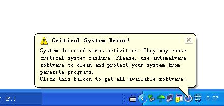 开机后出现这个提示,不停的闪烁,点击后下载一个外国杀毒软件,但要收费。通过瑞星网络版查杀(18.45),报没有病毒。请高手帮忙看看!