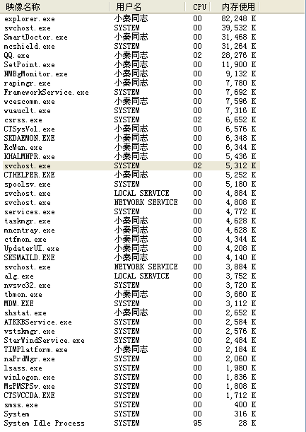 图是我27号~的系统进程~请高手帮我看看有没有症状~谢过了