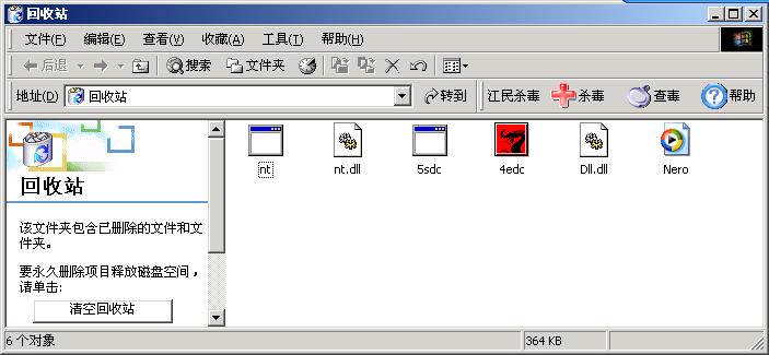 最近中了好几个病毒,有些删到回收站了,大家看看是什么病毒,有没有专杀?我的杀毒软件查不出来,