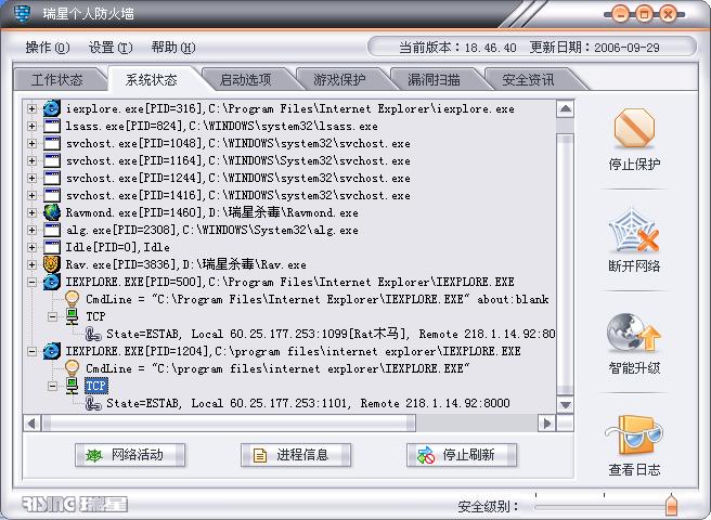 瑞星防火墙显示如图。