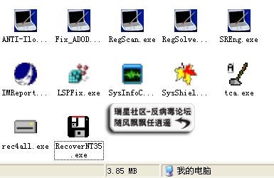 前天晚上一小P孩来我的电脑上下载游戏和MP3,我打开平时玩病毒的测试机让他自己下载。估计那小子不小心下载了带毒文件运行。他走后,我没有还原系统就将自己使用的80G硬盘接上。。。惨不忍睹,几乎全盘的EXE惨遭灭门