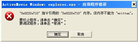active movie window :exploer.exe 0x02a51710 指令引用的0x02a51710内存 该内存不能为written