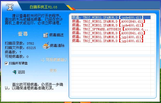 白猫系统王查出来的,怎么才能删除呀,各位大侠帮帮我吧。
