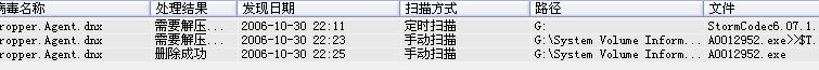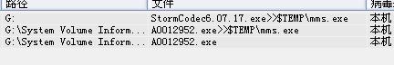 瑞星在扫描时,发现在G盘的StormCodec6.07.17.exe下面有个病毒。(这个东东就是暴风影音的安装程序,偶装完没删掉它。)