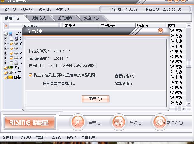 天啊!瑞星杀了[B]20275[/B]多个病毒