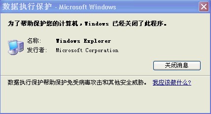 “数据执行保护” 点完了还出另一个窗口说 explorer.exe 遇到了问题需要关闭