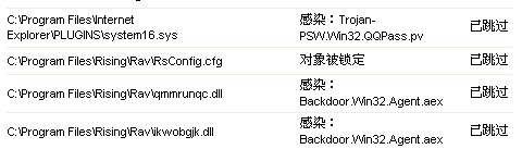 C:\Program Files\Rising\Rav\qmmrunqc.dll 感染:Backdoor.Win32.Agent.aex 已跳过