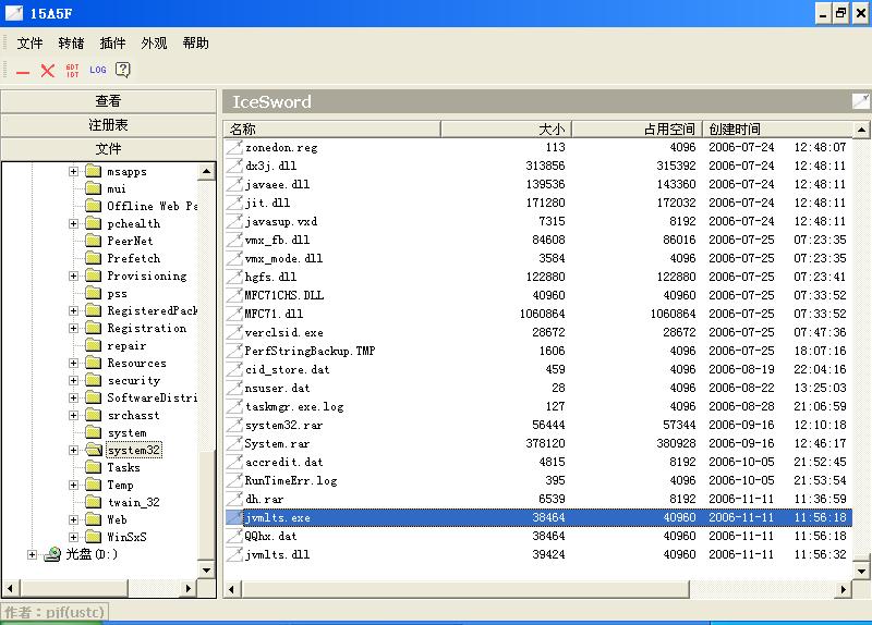 4.点击Icesword左下角的文件 找到C:\WINDOWS\system32\xxxxxx.exe
