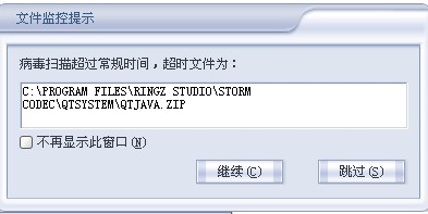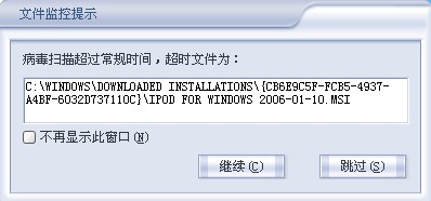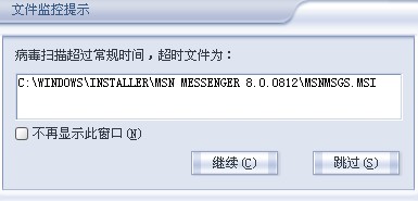 谁能跟我说下那个文件监控提示出来该怎么办?我去查又查不出毒..按继续还是跳过啊?