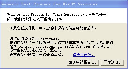 不知道是不是中了那个魔波,连上宽带不定时会跳出个Generic Host Process什么什么的,要关闭