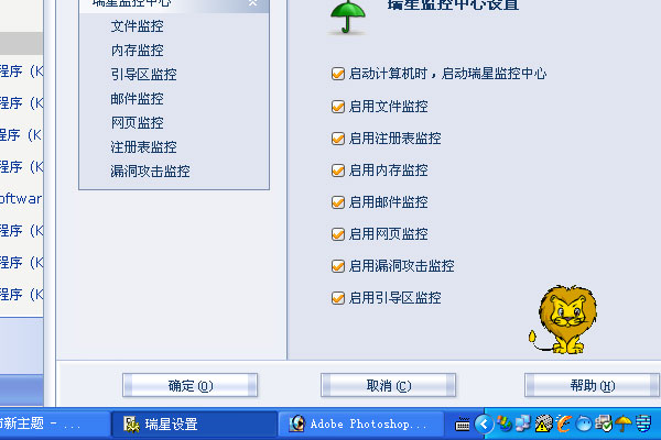请哪一位高手帮一下我吧,我的瑞星版本是2005年的升级后(到2007最新),可是防病毒内存监控禁用了,成了黄色的了,以前可不是哪样了.