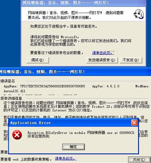 excetion eolesyserror in module 网络嗅探器.exe at 000880cd 没有注册类别。