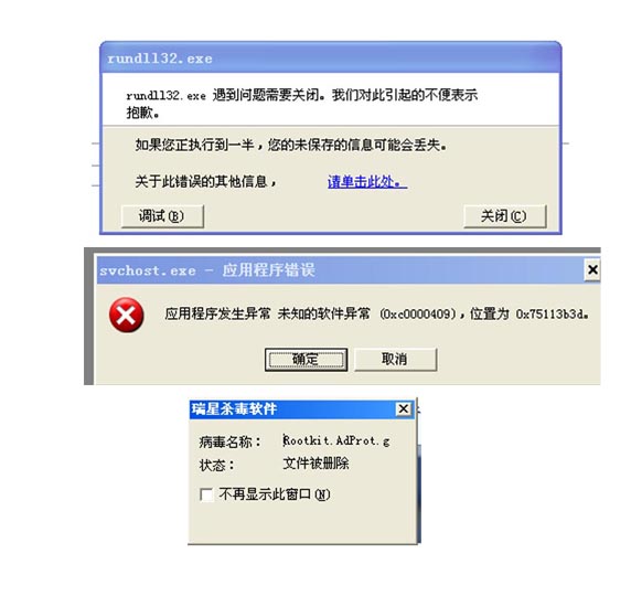 还有一打开IE都会出现一个叫“Rootkit.Adprot.g."的病毒,