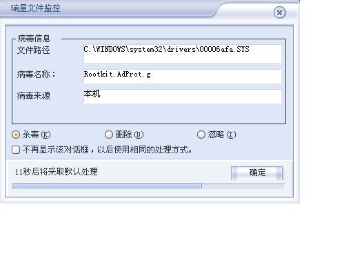 病毒的名字叫Rootkit.AdProt.g!~~不管怎么杀,只要重启它就会回来现在只知道,这个病毒的主要文件之一,是在windows下的system32里的drivers文件夹里生成一个前面有4个0的数字文件,大家的都不一样.我的就是00003b51.SYS 哪个混蛋弄出来的啊!~~~太过分了!~大家都中毒对他有什么好处呢?!~~