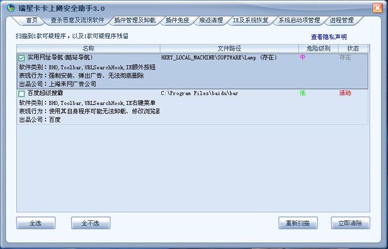 “实用网址导航”这个流氓瑞星3.006不能清除