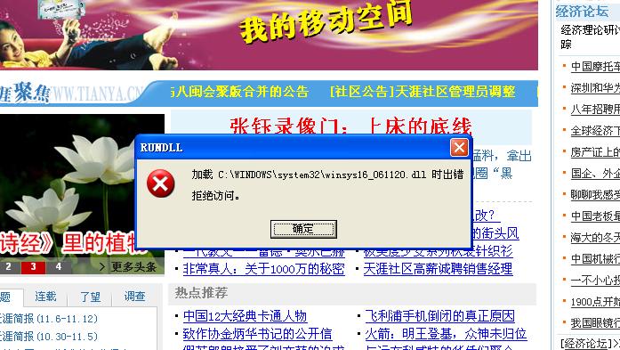 问题补充:还有就是删除之后就出现这样的对话框:RUNDLL 家载c:\WINDOWS\SYSTEM32\WINSYS16-061120.DLL时出错拒绝访问.