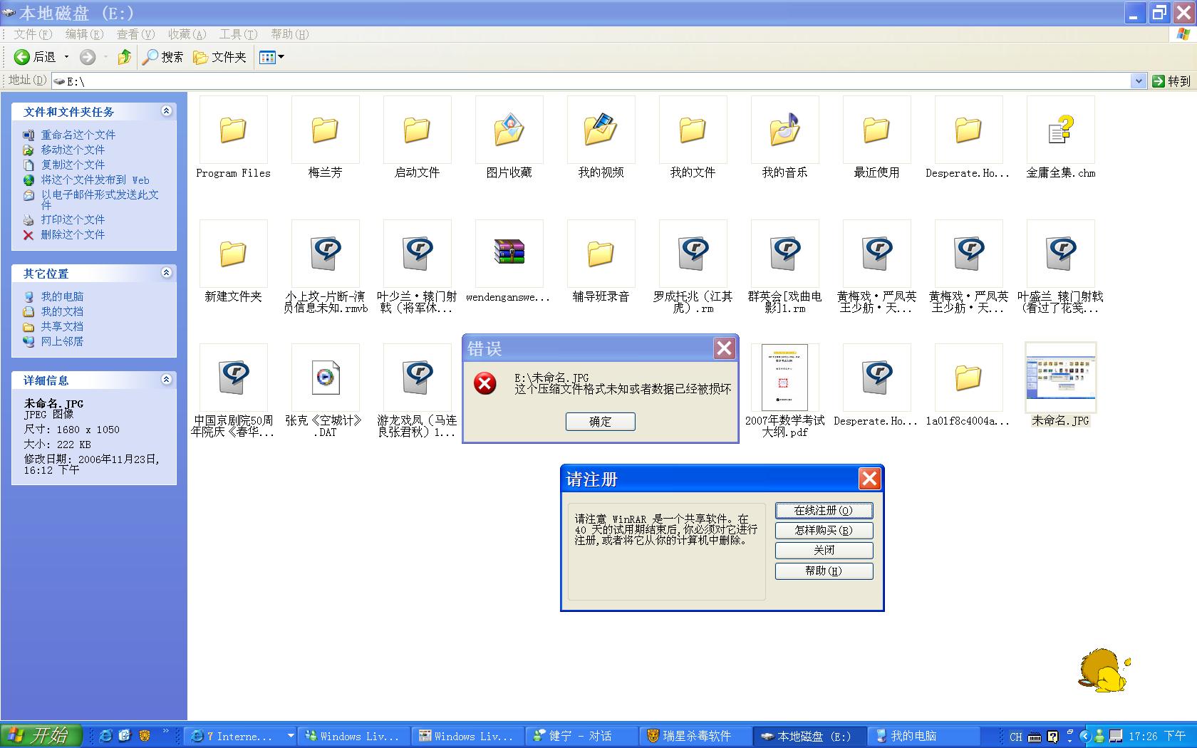 右键点击打开方式可打开。启动regsvr32 shimgvw.dll,无效,新装了winrar,无效。瑞星杀毒没找到病毒。请问是否中了病毒?