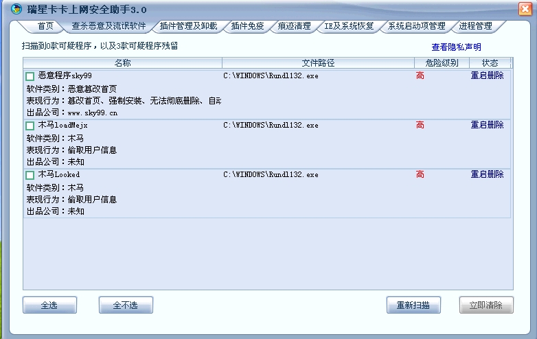 瑞星卡卡上网安全助手 显示 是重启删除,可是重启动了还有