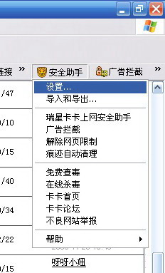点击浏览器右上角任务栏中的“安全助手”按钮,然后选择“设置”