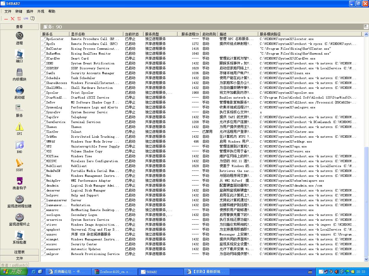 用IceSword120_cn检测服务发现sysresrv这个服务很可疑