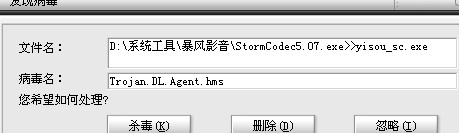 然后用瑞星杀毒,杀出来一个Trojan.DL.Agent.hms,说需手动清除,图片如下,求助高手该如何杀??