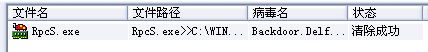 2.每次手动杀毒,都可以查杀一个后门病毒,既然提示删除成功了.怎么第二次开机又查杀,又会出现?如图二.