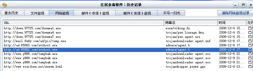 请版主帮忙看看,我的江民在上网时经常弹出病毒提示删除,但是删除以后还是弹出,尝试了很多办法都杀不了,请版主帮忙解决一下,万分感激!