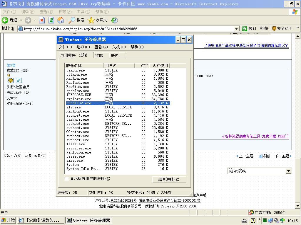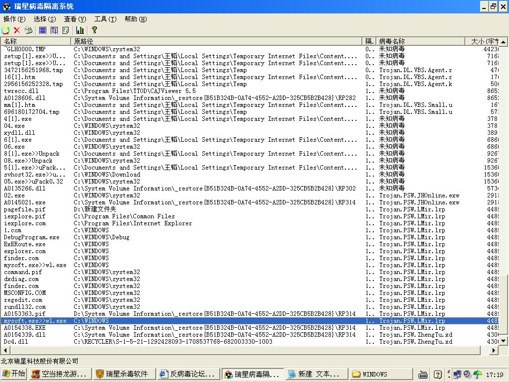 瑞星卡卡安全论坛技术交流区反病毒/反流氓软件论坛 【求助未解决】请教如何杀灭Trojan.PSW.LMir.lrp等病毒【运行进程及图片】