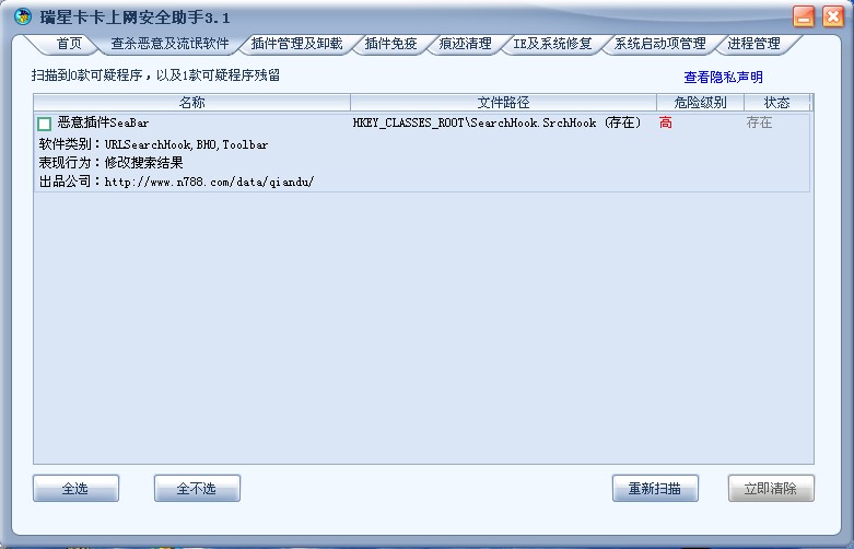 瑞星2009版查杀引擎测试