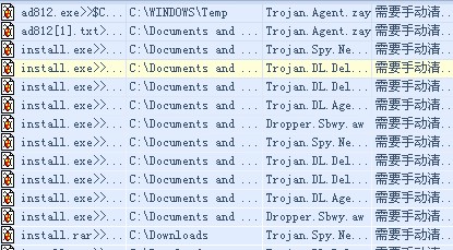 请帮助!瑞星查出这些东东可需要手动,怎样杀掉呀?
