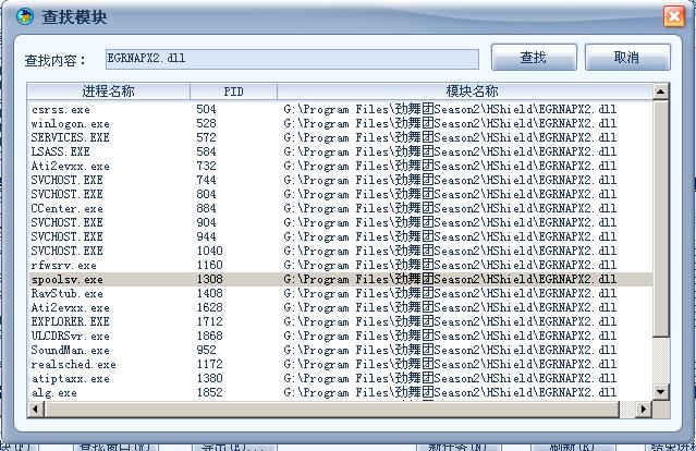 每个进程模块中都有G:\Program Files\劲舞团Season2\HShield\EGRNAPX2.dll
