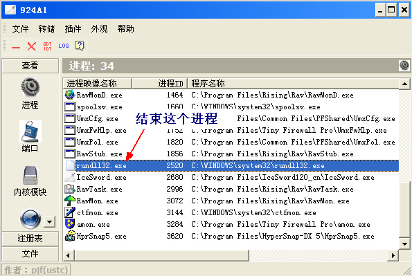 3、用IceSword强制删除下列木马、流氓文件: