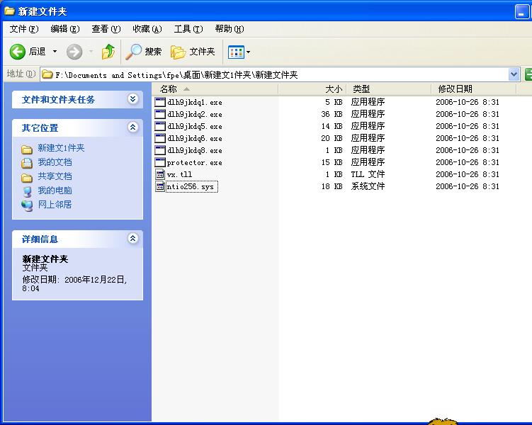 去了一看瑞星还是绿的,netstat一下真就开了个端口连着一个ip,开始autorun,System Repair Engineer,HijackThis什么也没有发现,夜路走多终见鬼,开了autorun显示数字签名,怀疑是有sys搞鬼,仔细查了一遍,没有可疑的东西。难道非要装ssm或防火墙,想起还有IceSword,打开直接奔端口,咣当重起,再来打开进程一看有个碍眼的protector.exe,没见过记下路径,杀死,去路径找,翻了好几遍,又一次见鬼没有,用IceSword文件一看有,删除不行,重起安全模式下发现,剪切到桌面新建个文件夹,重起正常模式下,打开一看倒空的,用IceSword一看明明有文件,用rar打包,打开一看没装进去,有问题,再次开了autorun查到sys部分,发现一个ntio256.sys,名称和签名都是空,刚才检查的时候没有,删除,到路径一看还有几个相同时间的文件,一起切走,重起检查,正常了。再看