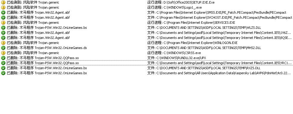 软就会报有病毒并杀毒.病毒种类很多,用卡巴斯基杀的,文后有查杀的病毒列表.