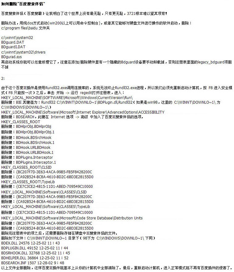 无法完全删除“百度搜索伴侣”,每次重启都会有检测到有垃圾在。
