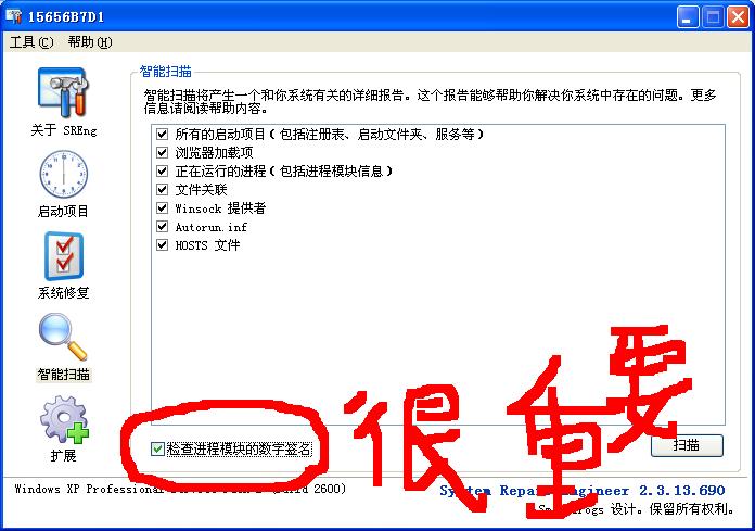 请下载SREng2(最新版) ,使用“智能扫描”,按下“扫描”按钮进行扫描,