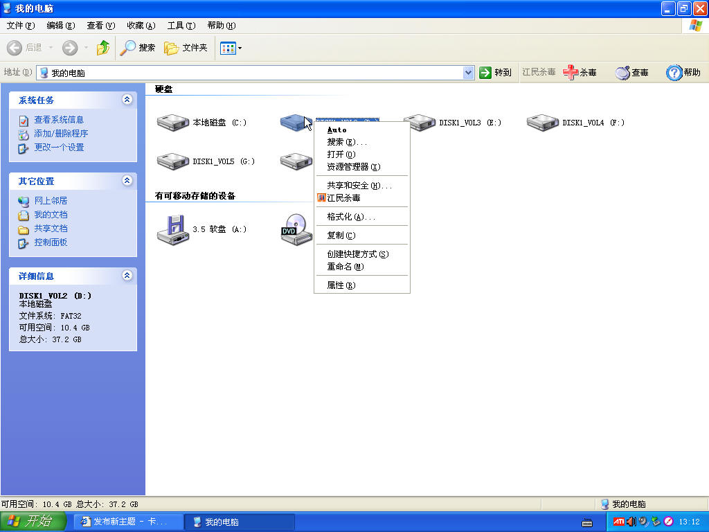 如图,这个病毒是我用移动硬盘带回来的。每个盘都染上了,
