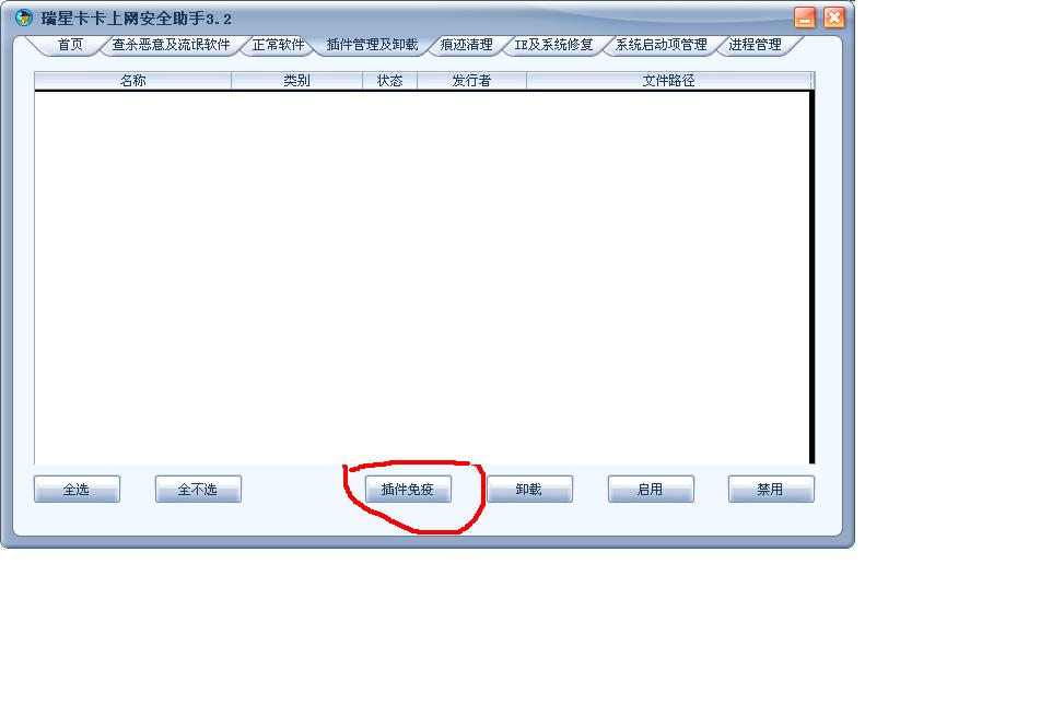 在插件免疫及卸载,下方的插件免疫按钮