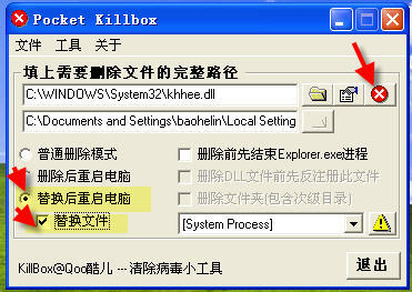 可以尝试用KillBox删除C:\WINDOWS\System32\khhee.dll(见附图)。