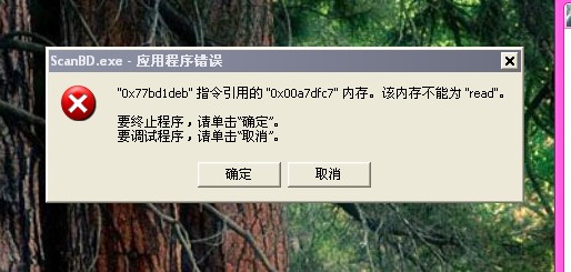“0x77bd1deb"指令引用的”0x00a7dfc7“内存。该内存不能为"read"