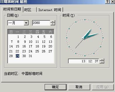 系统时间变成了2080年 是怎么回事,电脑上的所有的程序都无法运行。我们是刚做的系统,,全网吧的系统时间都变成了2080年。是怎么回事啊。。各位高手告诉我下。