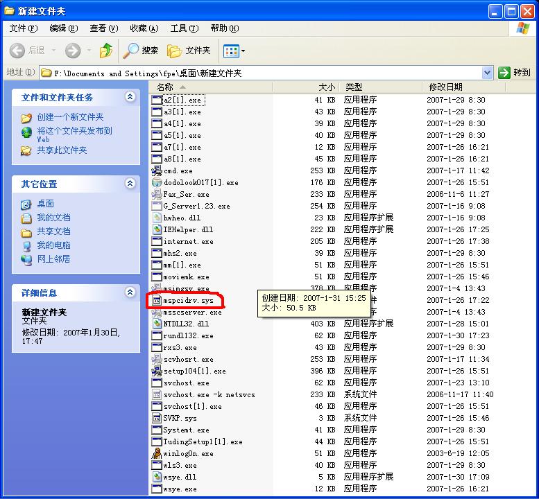 又见Desktop和NTService32.dll,msprotect.sys变mspcidrv.sys