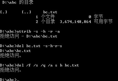 可以消除它的隐藏和系统属性,这样再用del命令册了它就行啦!